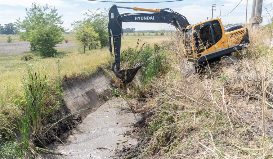 Las labores que se hacen con retroexcavadora sobre oruga y camión Tatu permitirán un mayor drenaje y están a cargo de Vizzolini e Iceta.
